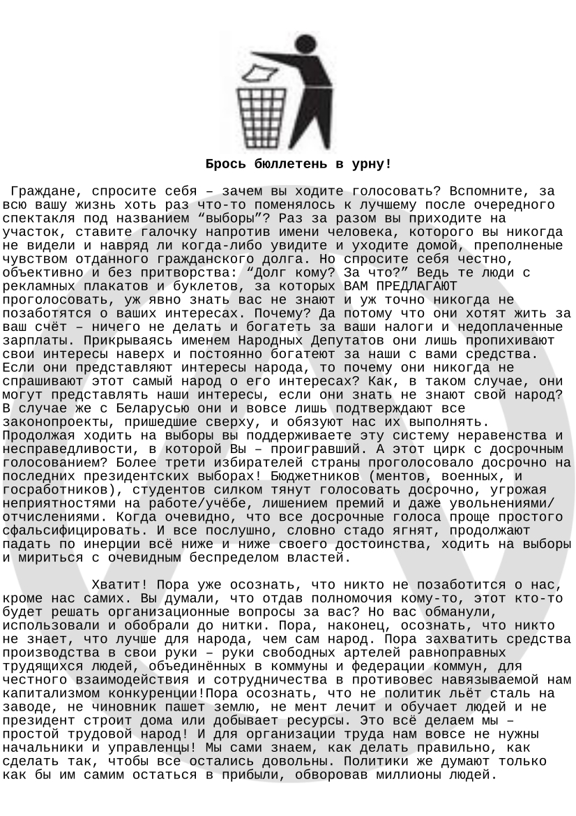 С небольшим опозданием публикуем фото отчет о раздаче листовок перед парламентскими выборами 9 сентября на рынке Ждановичи. По сообщениям товарищей было роздано около 150 листовок и 20 брошюр «Кто украл наше счастье».